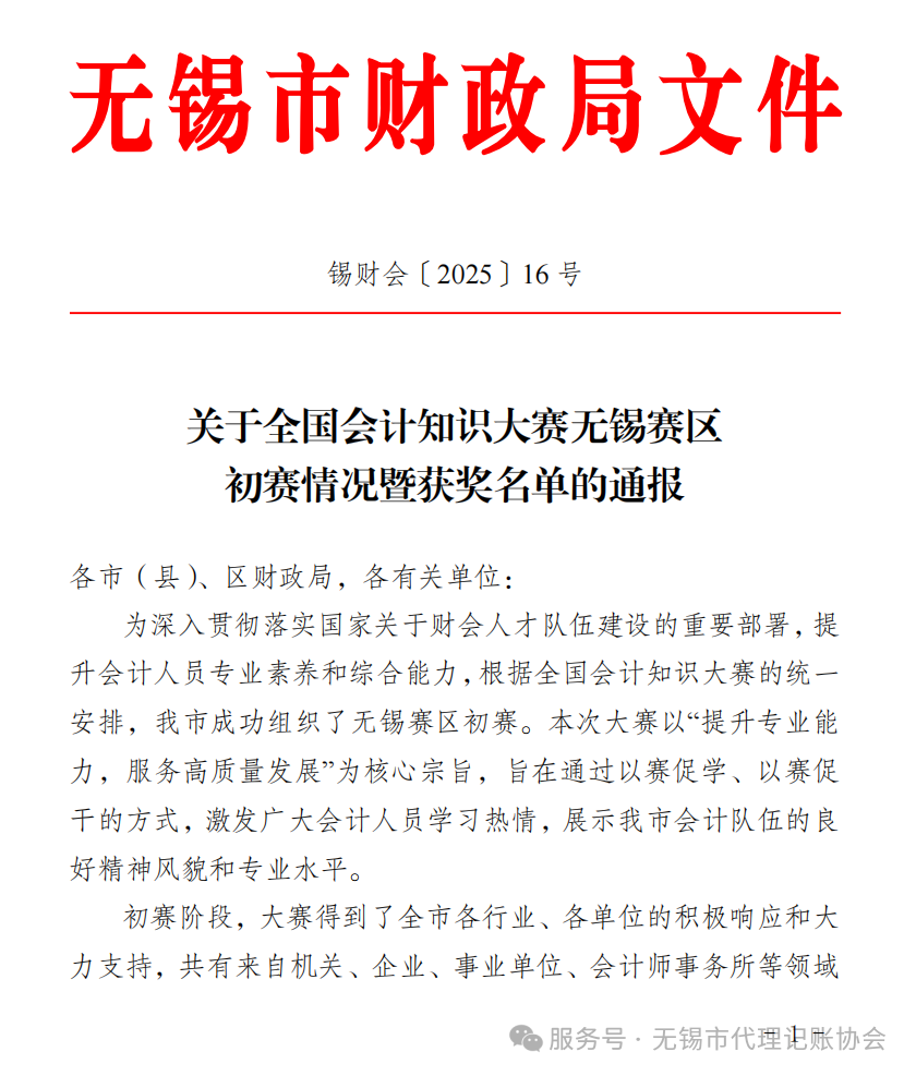 近日获悉,在无锡市财政局主办的全国会计知识大赛无锡赛区初赛评优活动中,无锡市代理记账协会凭借出色的组织与动员工作,荣获“组织奖”殊荣,并成为本届赛事中唯一获此奖项的民间团体。该奖项不仅见证了无锡市财政局对协会卓越组织协调能力与高度专业素养的充分肯定,更凸显了协会在行业内的引领作用与责任担当。此次获奖